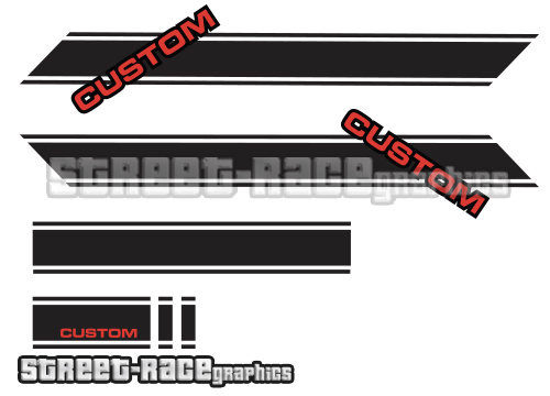 Included are large diagonal side racing side stripes, front bumper & bonnet stripes, plus stripes for the rear doors.