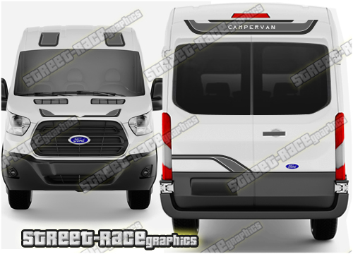 Campervan / Motorhome graphics kits. These are ideal for giving your existing camper a new look or to finish off a new camper conversion project. They are sized to fit the Ford Transit; all years, sizes and model variants. These graphics are designed to complement the side graphics listed in a separate category.