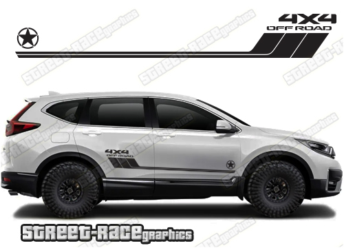 Honda CR-V racing stripes. They are shown on the fifth generation CR-V but they can be trimmed to fit all earlier and later versions and facelift variants. The decals are not pre-cut for any specific Honda CR-V version; they do not have any door handle cutouts, wheel arch or door line splits. These will require trimming during fitting. Vinyl will not stick to unpainted textured plastics.
