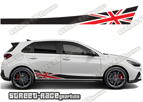 Hyundai i30 racing stripes. They are a universal fit to suit all Hyundai i30 cars and facelift variants. There are no cutouts for the wheel arches or door lines; these will require trimming during fitting.