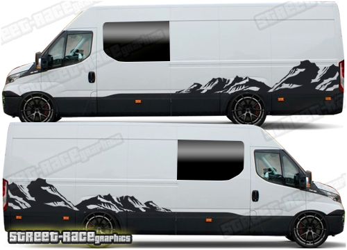 Campervan / Motorhome graphics kits. These are ideal for giving your existing camper a new look or to finish off a new camper van conversion project. We offer these decals in a range of sizes to suit all types of van.