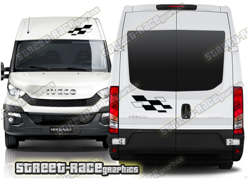 Campervan / Motorhome graphics kits. These are ideal for giving your existing camper a new look or to finish off a new camper conversion project. They are sized to fit the Iveco Daily. These complement the graphics listed in the ‘side graphics’ category.