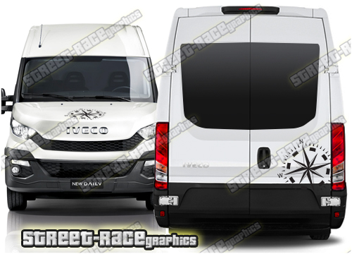 Campervan / Motorhome graphics kits. These are ideal for giving your existing camper a new look or to finish off a new camper conversion project. They are sized to fit the Iveco Daily. These complement the graphics listed in the ‘side graphics’ category.