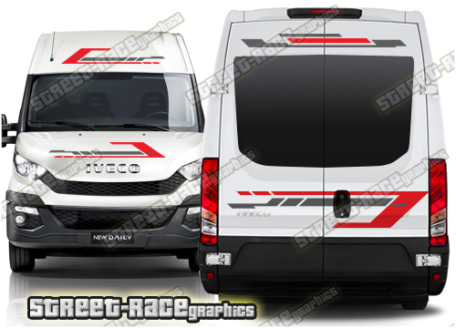 Campervan / Motorhome graphics kits. These are ideal for giving your existing camper a new look or to finish off a new camper conversion project. They are sized to fit the Iveco Daily. These complement the graphics listed in the ‘side graphics’ category.