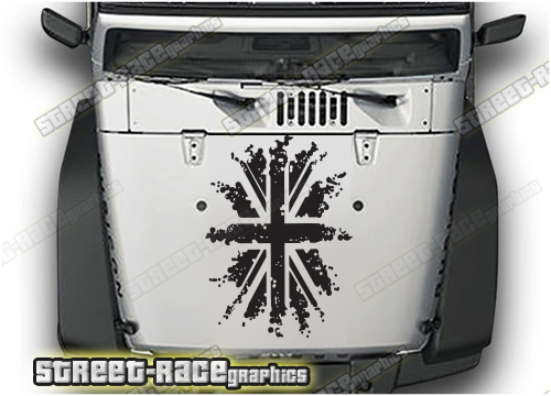 Jeep Wrangler bonnet / hood stickers 024 :: UK flag (grunge)