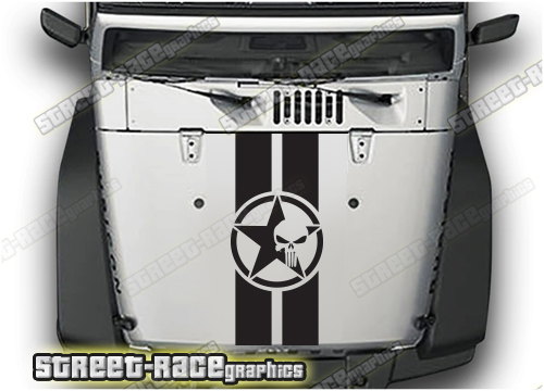 Jeep Wrangler bonnet / hood stickers. These decals will fit all Wrangler 4×4 off-road truck variants; the 2 and 4 door Jeep Wrangler JL Sport, JL Unlimited and Gladiator.