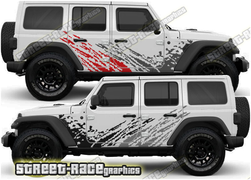 Jeep Wrangler rally raid style / overland large side stickers. These decals will fit all Wrangler 4 door 4×4 off-road truck variants.