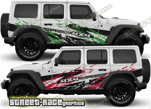 Jeep Wrangler rally raid style / overland large side stickers. These decals will fit all Wrangler 4 door 4×4 off-road truck variants.