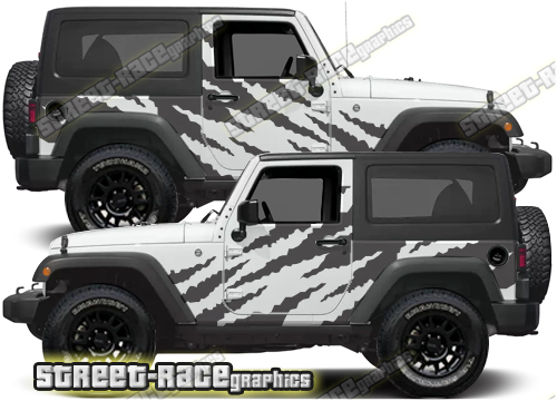 Jeep Wrangler rally raid style / overland large side stickers. These decals will fit all Wrangler 2 door 4×4 off-road truck variants.
