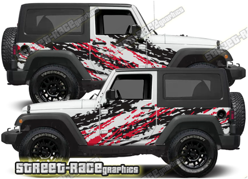 Jeep Wrangler rally raid style / overland large side stickers. These decals will fit all Wrangler 2 door 4×4 off-road truck variants.