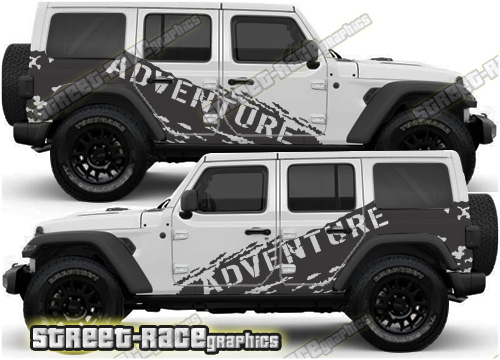 Jeep Wrangler rally raid style / overland large side stickers. These decals will fit all Wrangler 4 door 4×4 off-road truck variants.