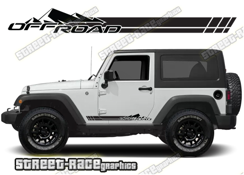 Jeep Wrangler side stickers. These decals will fit all Wrangler 2 door 4×4 off-road truck variants.