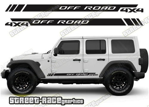 Jeep Wrangler side stickers. These decals will fit all Wrangler 4 door 4×4 off-road truck variants.