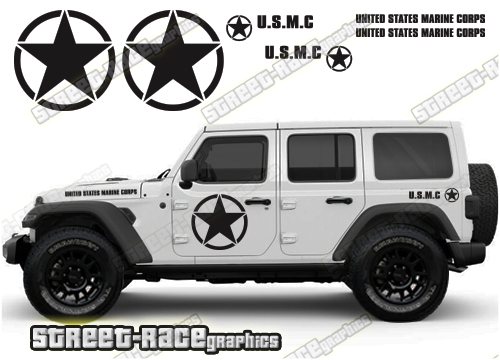 Jeep Wrangler side stickers. These decals will fit all Wrangler 4 door 4×4 off-road truck variants.