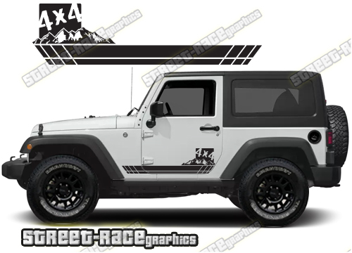 Jeep Wrangler side stickers. These decals will fit all Wrangler 2 door 4×4 off-road truck variants.