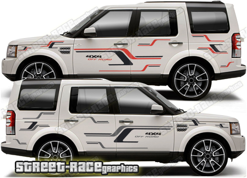 Land Rover Discovery graphics. They are shown on the third generation Land Rover Discovery but they will fit any Discovery 3 or 4. The decals are universal fit: they are not pre-cut for any specific Discovery 3 or 4. They do not have any door handle cutouts, wheel arch or door line splits. These will require trimming during fitting.