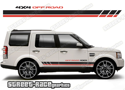 Land Rover Discovery racing stripes. They are shown on the third generation Land Rover Discovery but they will fit any Discovery 3 or 4. The decals are universal fit: they are not pre-cut for any specific Discovery 3 or 4. They do not have any door handle cutouts, wheel arch or door line splits. These will require trimming during fitting.