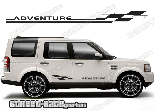 Land Rover Discovery racing stripes. They are shown on the third generation Land Rover Discovery but they will fit any Discovery 3 or 4. The decals are universal fit: they are not pre-cut for any specific Discovery 3 or 4. They do not have any door handle cutouts, wheel arch or door line splits. These will require trimming during fitting.