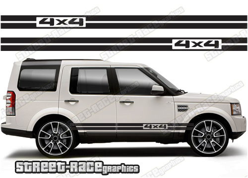 Land Rover Discovery racing stripes. They are shown on the third generation Land Rover Discovery but they will fit any Discovery 3 or 4. The decals are universal fit: they are not pre-cut for any specific Discovery 3 or 4. They do not have any door handle cutouts, wheel arch or door line splits. These will require trimming during fitting.