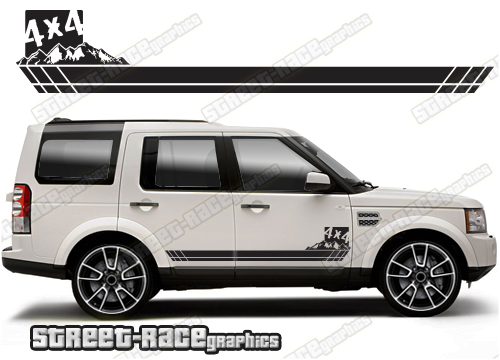 Land Rover Discovery racing stripes. They are shown on the third generation Land Rover Discovery but they will fit any Discovery 3 or 4. The decals are universal fit: they are not pre-cut for any specific Discovery 3 or 4. They do not have any door handle cutouts, wheel arch or door line splits. These will require trimming during fitting.