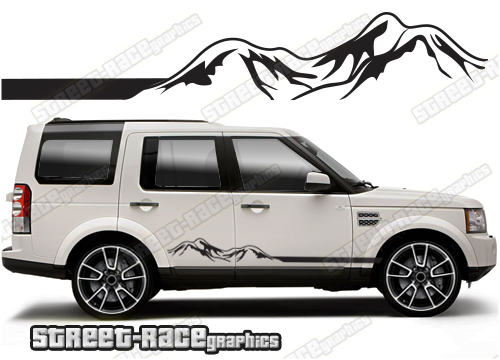Land Rover Discovery racing stripes. They are shown on the third generation Land Rover Discovery but they will fit any Discovery 3 or 4. The decals are universal fit: they are not pre-cut for any specific Discovery 3 or 4. They do not have any door handle cutouts, wheel arch or door line splits. These will require trimming during fitting.