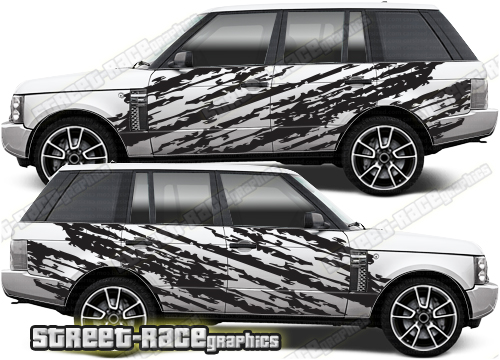 Range Rover graphics. They are shown on the third generation Range Rover but they will fit any Range Rover 3 or 4 (L322 or L405). The decals are universal fit: they are not pre-cut for any specific Range Rover 3 or 4. They do not have any door handle cutouts, wheel arch or door line splits. These will require trimming during fitting.