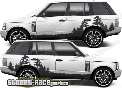 Range Rover graphics. They are shown on the third generation Range Rover but they will fit any Range Rover 3 or 4 (L322 or L405). The decals are universal fit: they are not pre-cut for any specific Range Rover 3 or 4. They do not have any door handle cutouts, wheel arch or door line splits. These will require trimming during fitting.