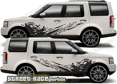 Land Rover Discovery side grunge mud splatter sticker kit from street-race.org. This off-road graphics kit will fit all Discovery SUV’s + facelift variants.