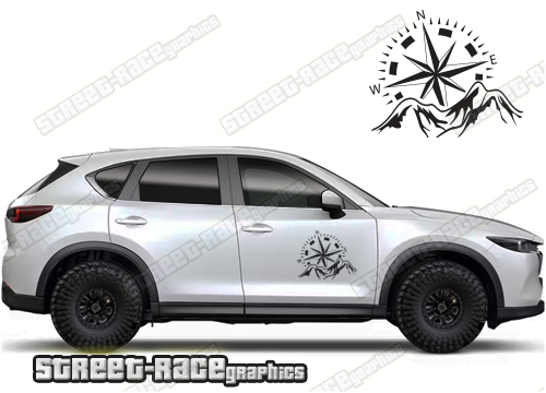 Mazda CX-5 compass stickers. They are shown on the third generation Mazda CX-5 but they can be trimmed to fit all other versions and facelift variants.