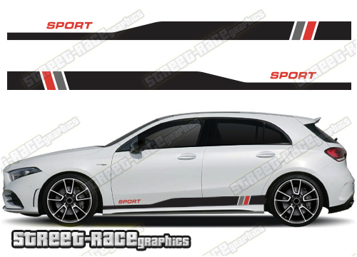 Mercedes SPORT racing stripe graphics, to suit all Mercedes A and B class cars and facelift variants (both 3 and 5 door versions).