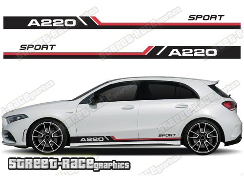 Mercedes SPORT racing stripe graphics. We can change the logo to read A45, A180, A200, A220, B180, B200 or B220. Please add a message on the checkout page if you need us to change the lettering.