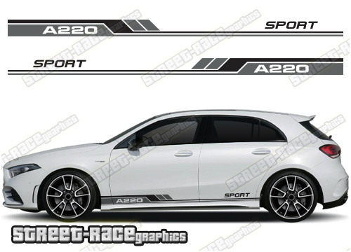 Mercedes SPORT racing stripe graphics. We can change the logo to read A45, A180, A200, A220, B180, B200 or B220. Please add a message on the checkout page if you need us to change the lettering.