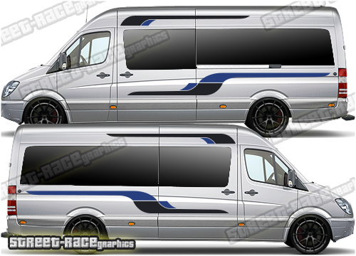 VW Crafter Campervan / Motorhome graphics kits. These are ideal for giving your existing camper a new look or to finish off a new camper conversion project. They are shown on the L3 (LWB) van with minibus windows. We can also make them to suit the L1 (SWB), L2 (MWB) and L4 (XLWB) vans (choose the wheelbase length from the menu).