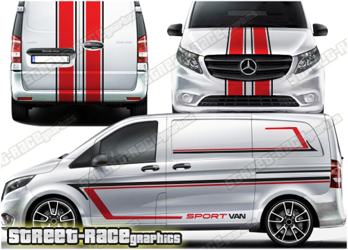 Mercedes Vito bonnet / hood, tailgate and side racing stripe graphics, to suit all Mercedes Vito vans.