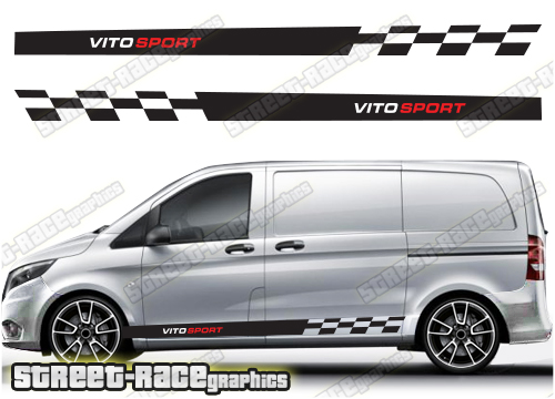 Mercedes Vito side racing stripes graphics kit. These stripes will fit all Mercedes Vito vans.