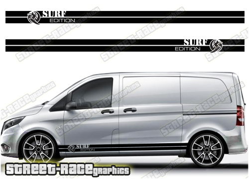 Mercedes Vito side racing stripes graphics kit. These stripes will fit all Mercedes Vito vans.