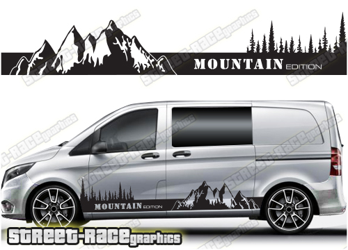 Mercedes Vito / V-Class campervan mountain adventure stickers. Perfect for a camper or day-van conversion. These decals will suit all Vito and V-Class vans.