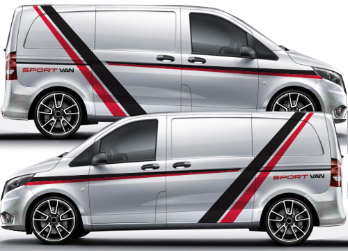Graphics are shown fitted to a SWB MK3 van, they will also fit the SWB and LWB MK1 & MK2 Mercedes Vito / V-Class Viano.