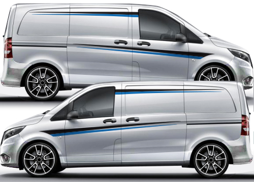 Graphics are shown fitted to a SWB MK3 van, they will also fit the SWB and LWB MK1 & MK2 Mercedes Vito / V-Class Viano.