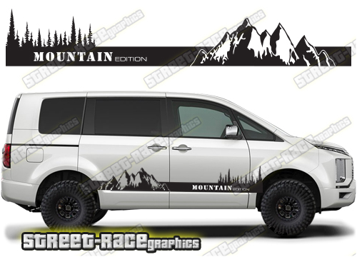 Mitsubishi Delica racing stripes: They are a universal fit designed to suit MK3 onwards and all facelift versions of these mid-sized vans. Also known as the Delica D:3 and Mitsubishi L300. There are no cutouts for the wheel arches, door handles or door lines; these will require trimming during fitting.