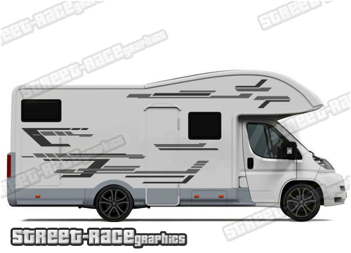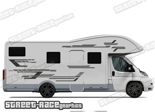 Motorhome graphics kits. These are ideal for giving your existing motorhome a new look or to finish off a restoration project. Shown on a compact 6m van on the first picture. We can also make them to suit the larger 7m and 7.5m vans (shown the second and third pictures) – choose the wheelbase length of your motorhome from the drop-down menus.