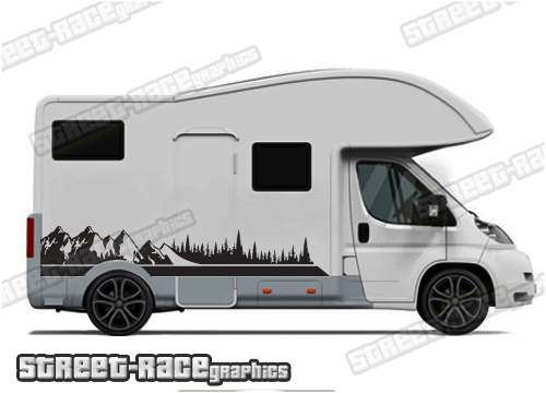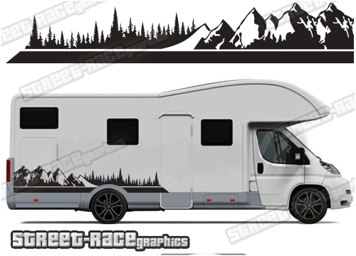 Motorhome graphics kits. These are ideal for giving your existing motorhome a new look or to finish off a restoration project. Shown on a compact 6m van on the first picture. We can also make them to suit the larger 7m and 7.5m vans (shown the second and third pictures) – choose the wheelbase length of your motorhome from the drop-down menus.