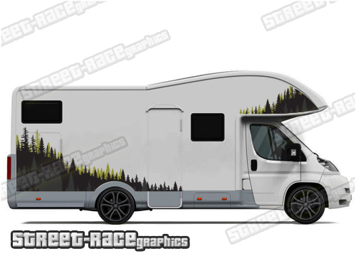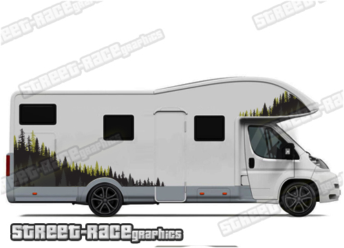 Motorhome graphics kits. These are ideal for giving your existing motorhome a new look or to finish off a restoration project. Shown on a compact 6m van on the first picture. We can also make them to suit the larger 7m and 7.5m vans (shown the second and third pictures) – choose the wheelbase length of your motorhome from the drop-down menus.