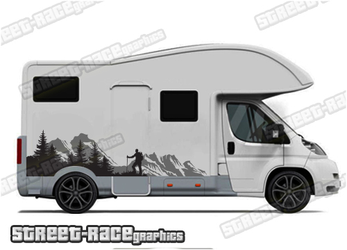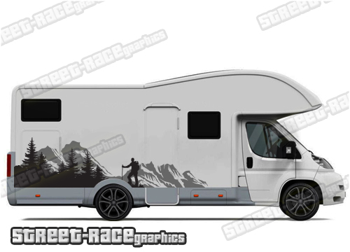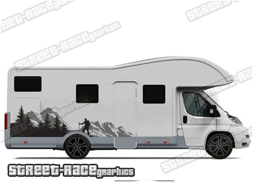 Motorhome graphics kits. These are ideal for giving your existing motorhome a new look or to finish off a restoration project. Shown on a compact 6m van on the first picture. We can also make them to suit the larger 7m and 7.5m vans (shown the second and third pictures) – choose the wheelbase length of your motorhome from the drop-down menus.