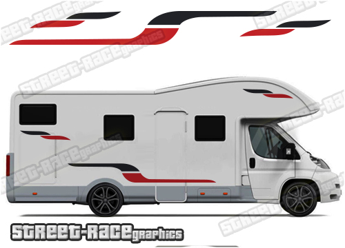Motorhome graphics kits. These are ideal for giving your existing motorhome a new look or to finish off a restoration project. Shown on a compact 6m van on the first picture. We can also make them to suit the larger 7m and 7.5m vans (shown the second and third pictures) – choose the wheelbase length of your motorhome from the drop-down menus.