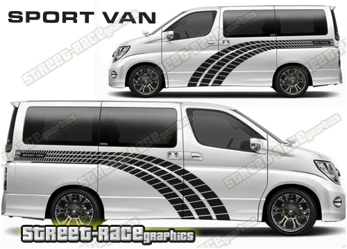 Nissan Elgrand graphics. Great for a camper or race van conversion. They are a universal fit to suit all Nissan Elgrand vans and facelift variants from MK1 onwards. There are no cutouts for the wheel arches, door handles or door lines, these will require trimming during fitting.