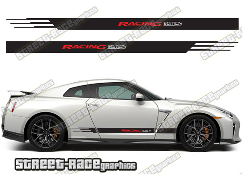 Nissan Skyline racing stripes sticker kit from street-race.org. They are a universal fit so will fit all Nissan Skyline cars and facelift variants. They are not pre-trimmed around the vents, wheel arches or door lines – they will require minor trimming during fitting.