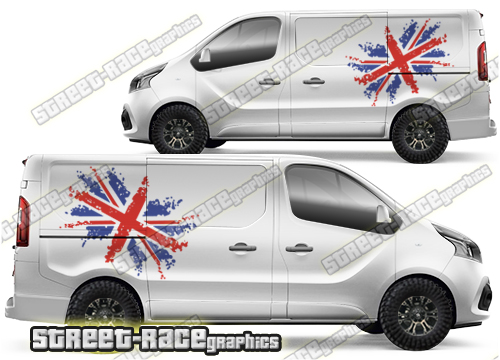 Nissan NV300 / Primastar large side graphics. Great for a camper or race van conversion. They are a universal fit to suit all Nissan NV300 / Primastar vans and facelift variants from MK2 onwards. There are no cutouts for the door handles, wheel arches or door lines, these will require trimming during fitting. Shown on the short wheelbase (SWB) Nissan NV300 van, but we can also make them to fit the long wheelbase (LWB).