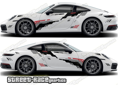 Porsche 911 large side graphics. A perfect addition to your track-day car. These graphics will also fit other similar-sized 911 variants such as the Porsche 992, 991, 997 and 916.