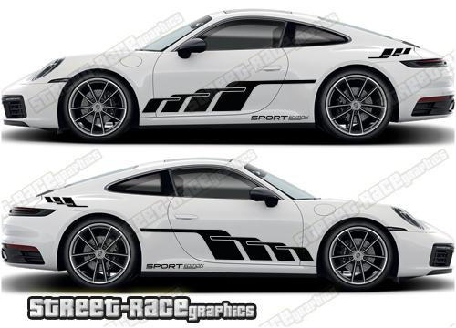 Porsche 911 large side graphics. A perfect addition to your track-day car. These graphics will also fit other similar-sized 911 variants such as the Porsche 992, 991, 997 and 916.